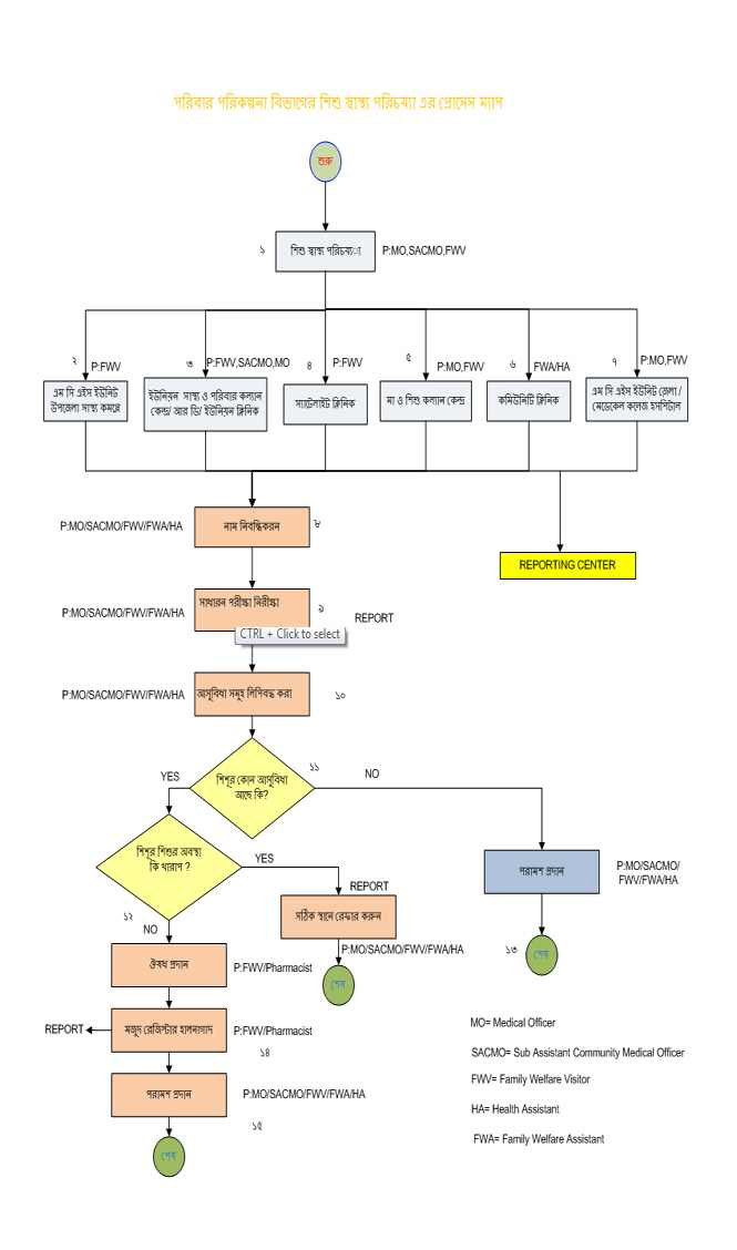 পরিবার পরিকল্পনা বিভাগের শিশু স্বাস্থ্য পরিচর্যা এর প্রসেস ম্যাপ
