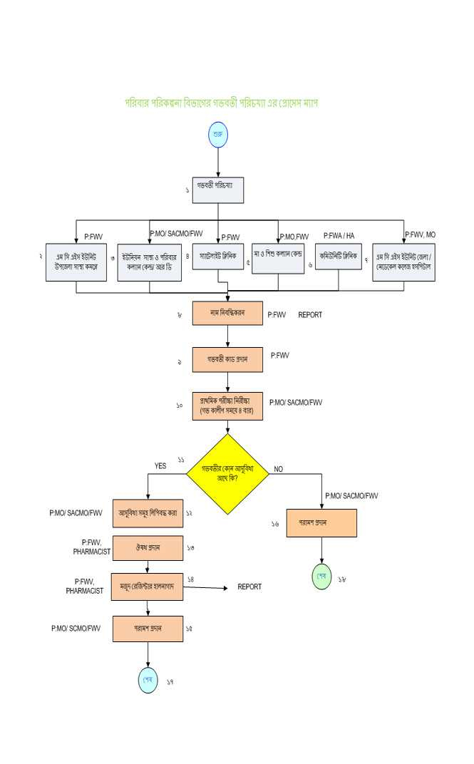 পরিবার পরিকল্না বিভাগের গর্ভবতী পরিচর্যা এর প্রসেস ম্যাপ